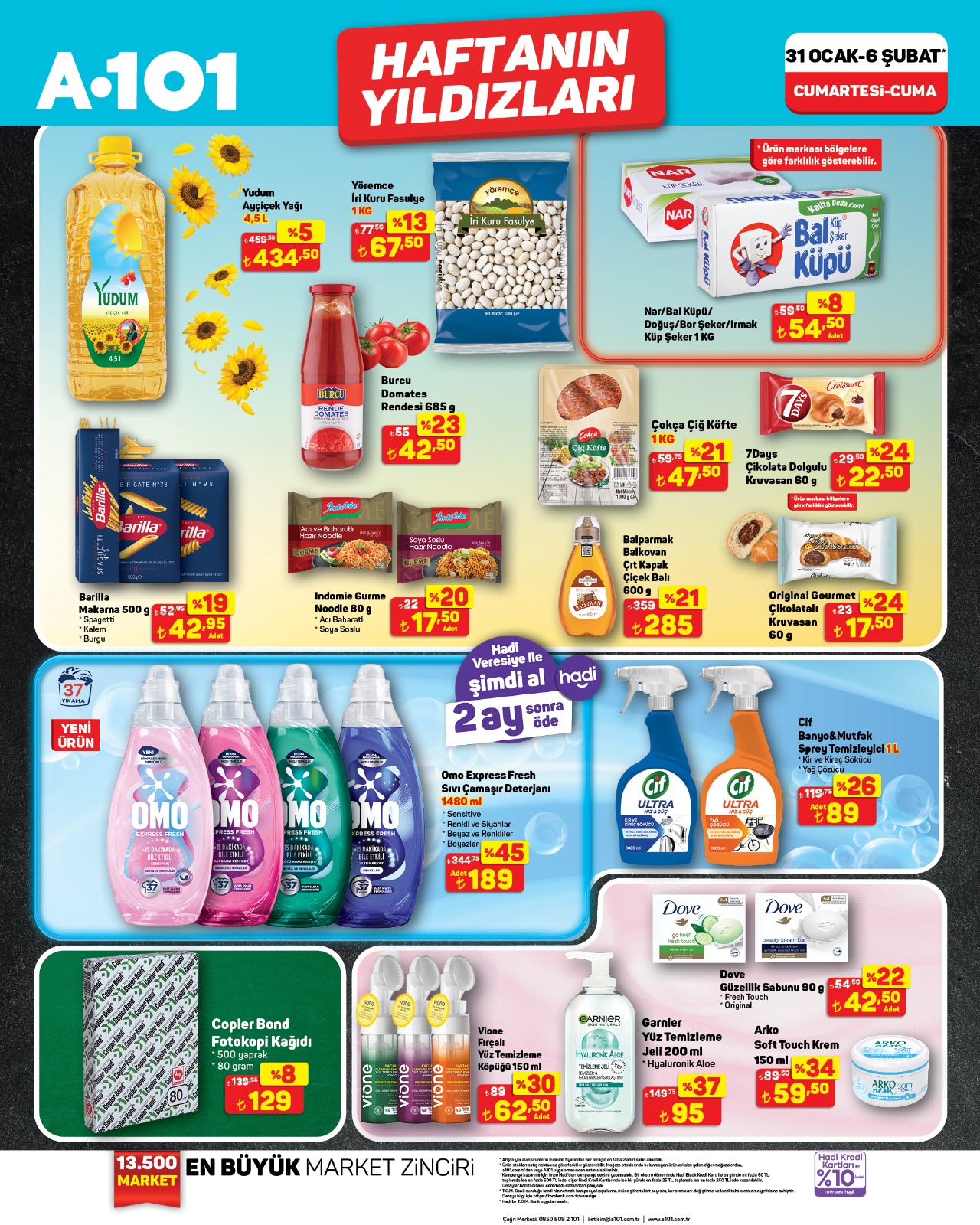 Unutmayın: 6 Şubat’a kadar sürecek olan bu indirimler stoklarla sınırlı. Popüler ürünlerin ilk günlerden tükenmesi beklendiğinden, alışveriş listesini erkenden hazırlayıp en yakın A101 şubesine uğramak bütçeniz için en kârlı adım olacaktır.